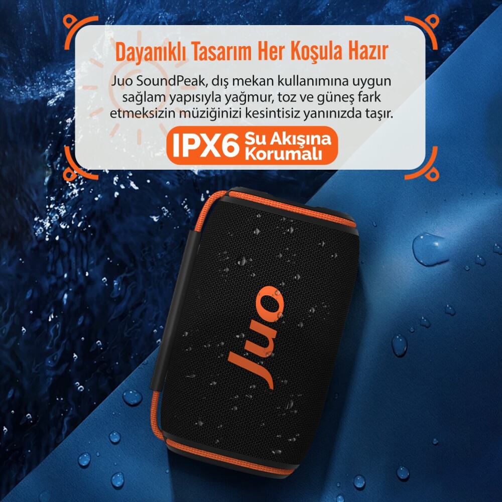 IPX6 su geçirmez sertifikasına sahip olan bu su geçirmez Bluetooth hoparlör, açık hava aktivitelerinizde güvenle kullanabileceğiniz bir tasarıma sahiptir. ABS + Rubber malzeme kombinasyonu ile üretilen hoparlör, darbelere karşı dayanıklı ve uzun ömürlü kullanım sağlar.