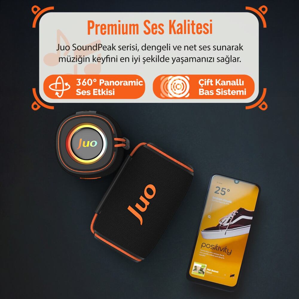 - 1x Juo SoundPeak Flex 10W Kablosuz Taşınabilir RGB Hoparlör