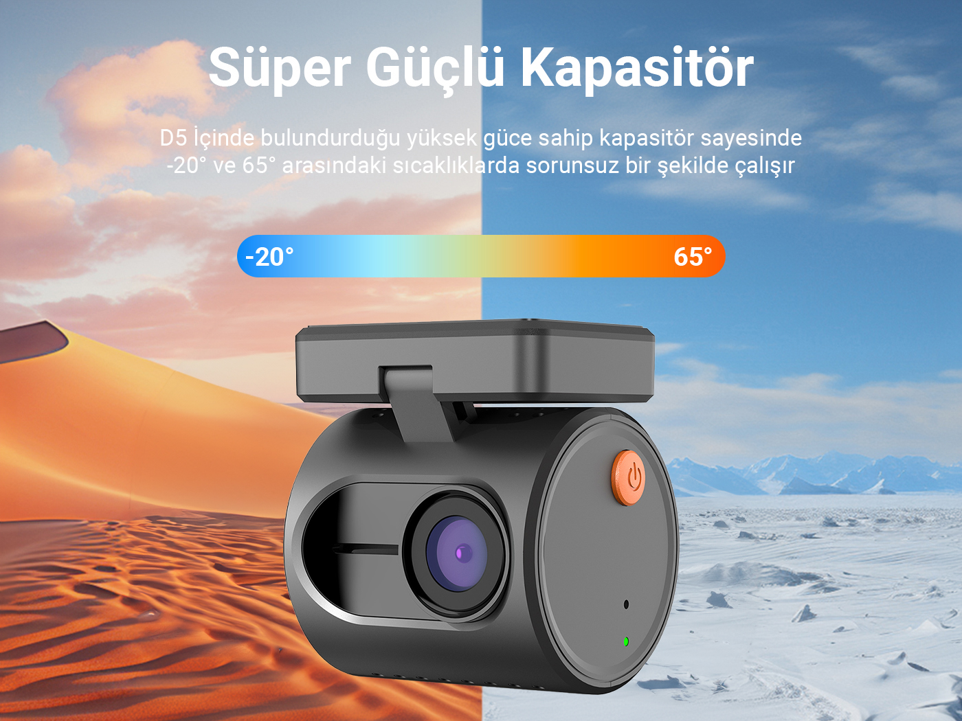 Yan tarafında bulunan güç tuşu üzerinde yapacağınız kombinasyonlar ile kameranız üzerinde birçok işlem yapabilirsiniz. 100° dönüş açısı sayesinde kameranızı rahatça istediğiniz açıyı çekmesi için konumlandırabilirsiniz. Mini tasarımı sayesinde kamerayı aracınızın dikiz aynasının arkasına saklayabilirsiniz. Sert Plastikten tasarlanan dış kasanın üzerinde bulunan delikli yapıdaki hava kanalları kameranın aşırı ısınmasını önler.