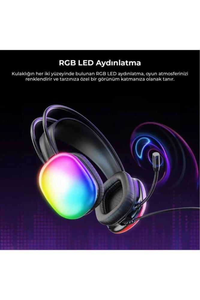 Kulaklığın her iki yüzeyinde bulunan RGB LED aydınlatma, oyun atmosferinizi renklendirir ve tarzınıza özel bir görünüm katmanıza olanak tanır.