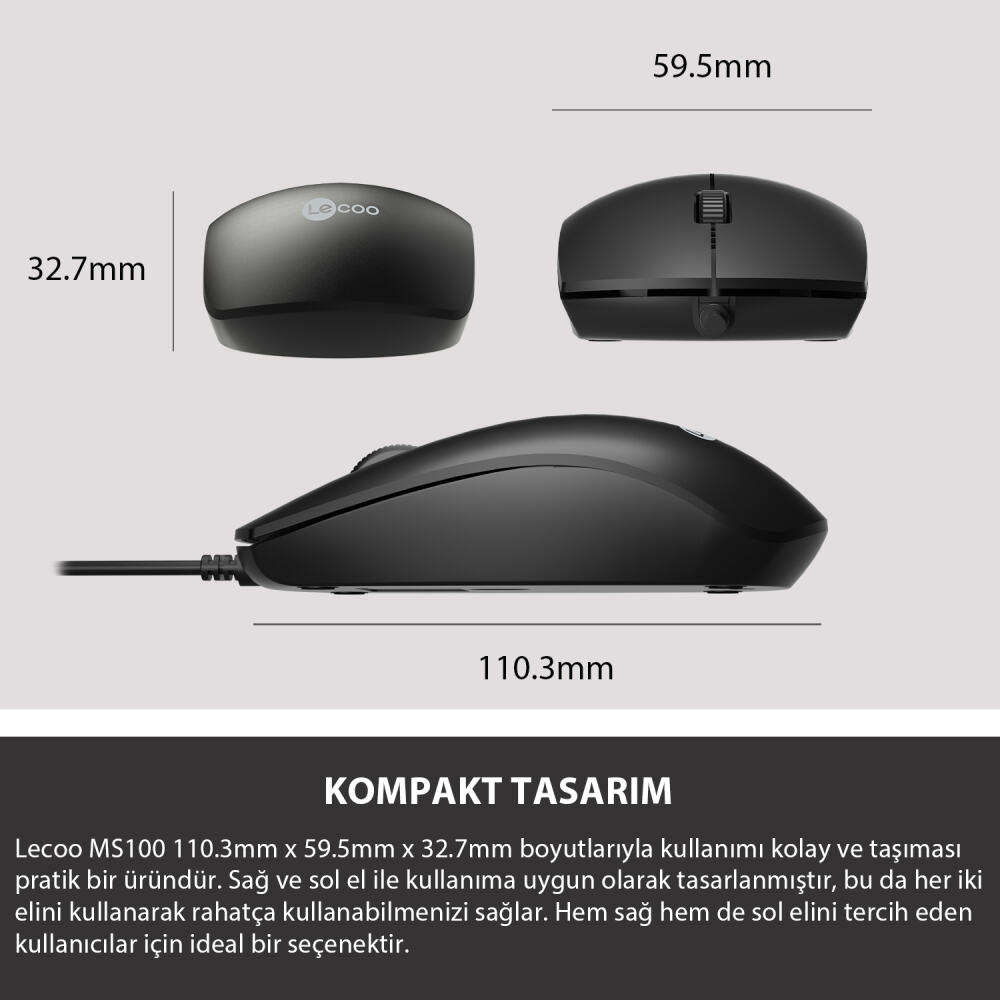 Geniş Uyumlu İşletim Sistemi DesteğiLecoo MS100, Windows 2000, WIN XP, WIN7, WIN8 ve WIN10, WIN11 ve macOS işletim sistemleri ile tam uyumlu çalışır. Kolay kurulumu ve otomatik devreye alma özelliği sayesinde hızla kullanmaya başlayabilirsiniz. USB mikro kablo tipi, hızlı ve güvenilir veri transferi sağlar. Aynı zamanda düşük enerji tüketimi ile bütçenize katkı sağlar.