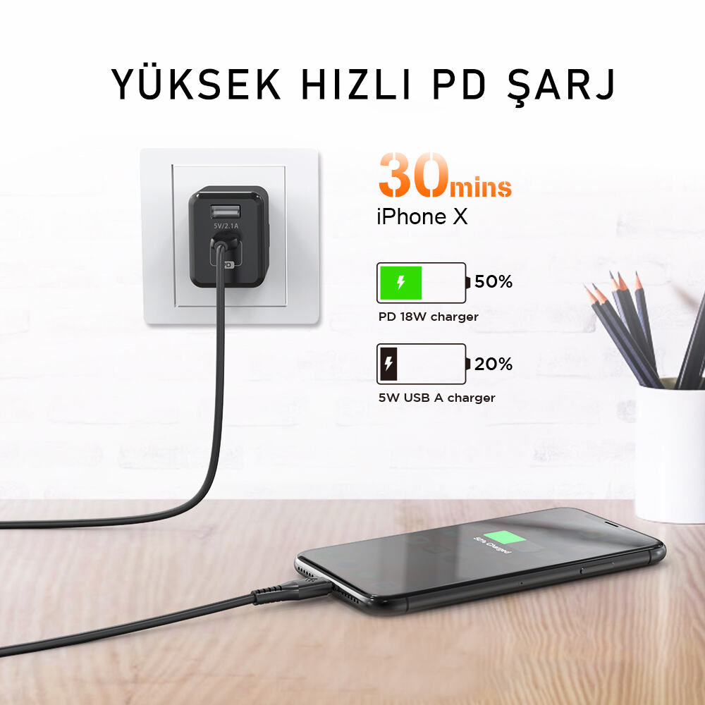 PD uyumluluğu bulunan cihazlarınızı hızlı şarj etmenize olanak sağlar. Aynı zamanda cihazlarınız arasında veri aktarımı sağlayabilirsiniz.