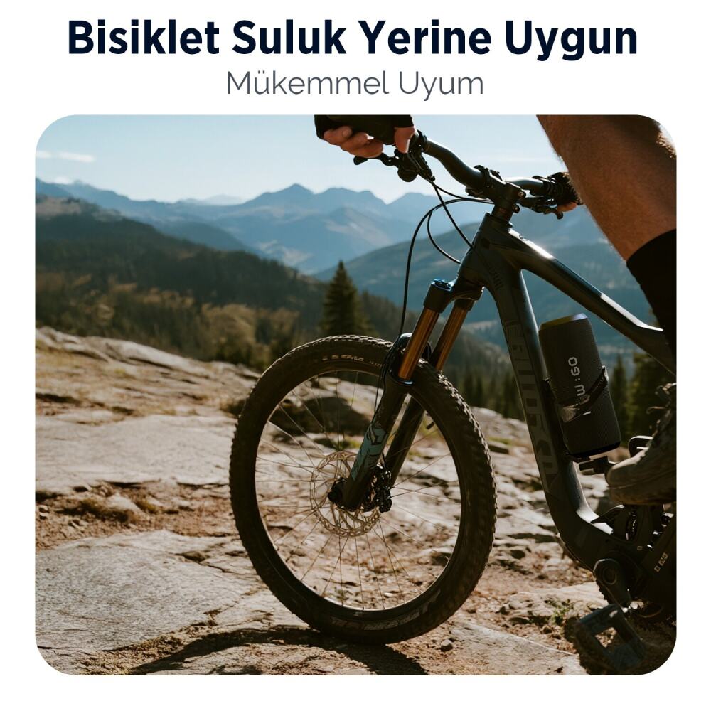 IPX6 su geçirmezlik standardına sahip bu Bluetooth hoparlör, yağmur ve su sıçramalarına karşı tam koruma sağlar. 4000 mAh batarya kapasitesi ile 20 saate kadar kesintisiz çalışma süresi sunan kablosuz hoparlör, bisiklet suluk tutucusuna uygun kompakt tasarımı ile her yere kolayca taşınabilir.