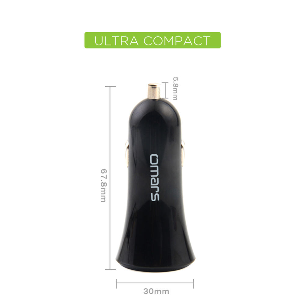 Omars 3.4A 17W çift USB çıkışlı araç şarj cihazı ile aracınızın araç çakmaklık çıkışı üzerinden kolay bir şekilde mobil cihazlarınızı şarj edebilmenize olanak sağlar. Aynı anda iki cihazıda rahatlıkla şarj edebilirsiniz. Sahip olduğu 1A'lik portu üzerinden iPhone vb. cihazlarınızı güvenle şarj edebilirken diğer 2.4A desteği bulunan port üzerinden Android cihazlarınızı 2.4 Ampere kadar hızlı biçimde şarj edebilirsiniz. Sahip olduğu kısa devre koruma, akım koruma ve şarj kontrol ünitesi ile cihazlarınıza zarar vermeden güvenli şarj etmenizi sağlar.
