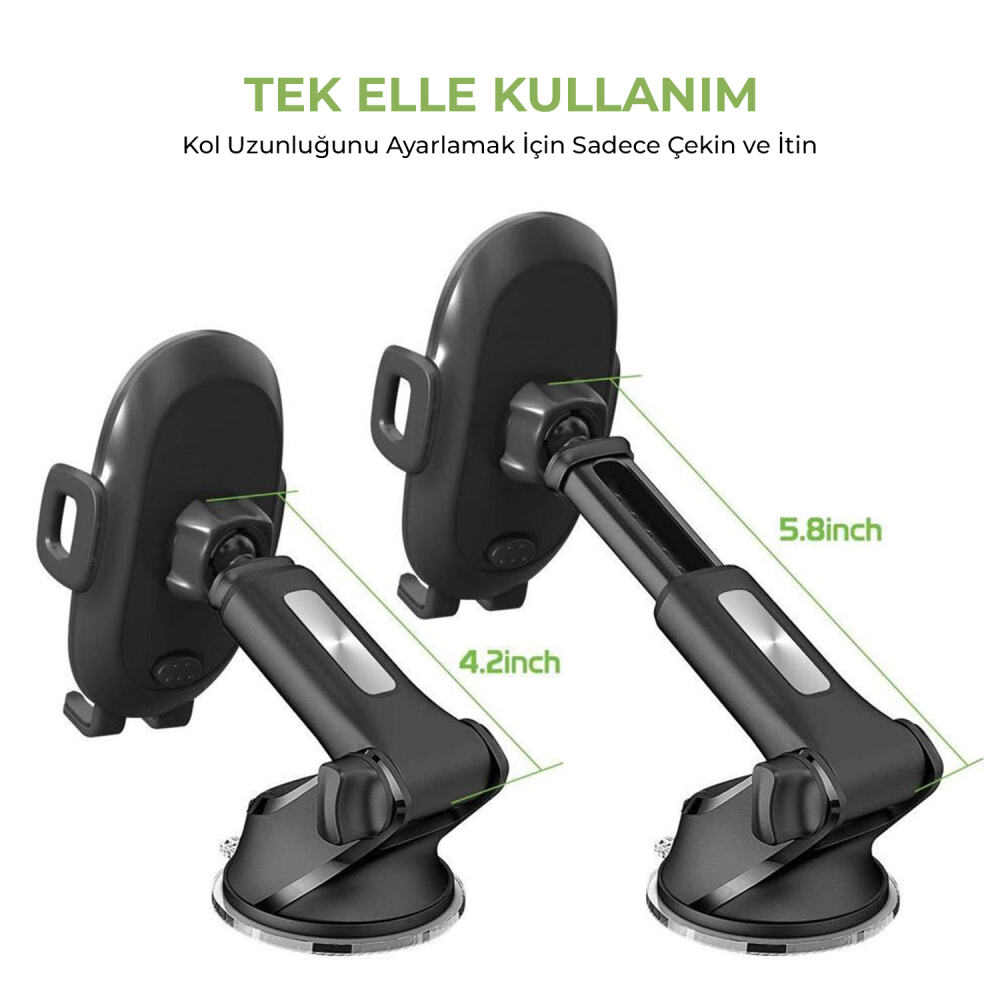 Omars Vantuzlu Uzayabilen Havalandırma Torpido ve Cam için Araç içi Telefon Tutucu, vantuzla yapıştırılıp kullanıldığında ya da havalandırmaya klips yardımıyla sabitlendiğinde sabit şekilde durur ve kullanım esnasında sallanmayarak asla sizi rahatsız edecek bir gürültü çıkarmaz. Pratik yapısı sayesinde tek elle kullanımı mümkündür. Ayarlanabilir kolu 8 cm uzunluğundadır ve bu kol uzatıldığında 14 cm'e kadar uzayabilir. Bu sayede görüş açınızı engellemeyerek sürüş konforunuzu devam ettirir.