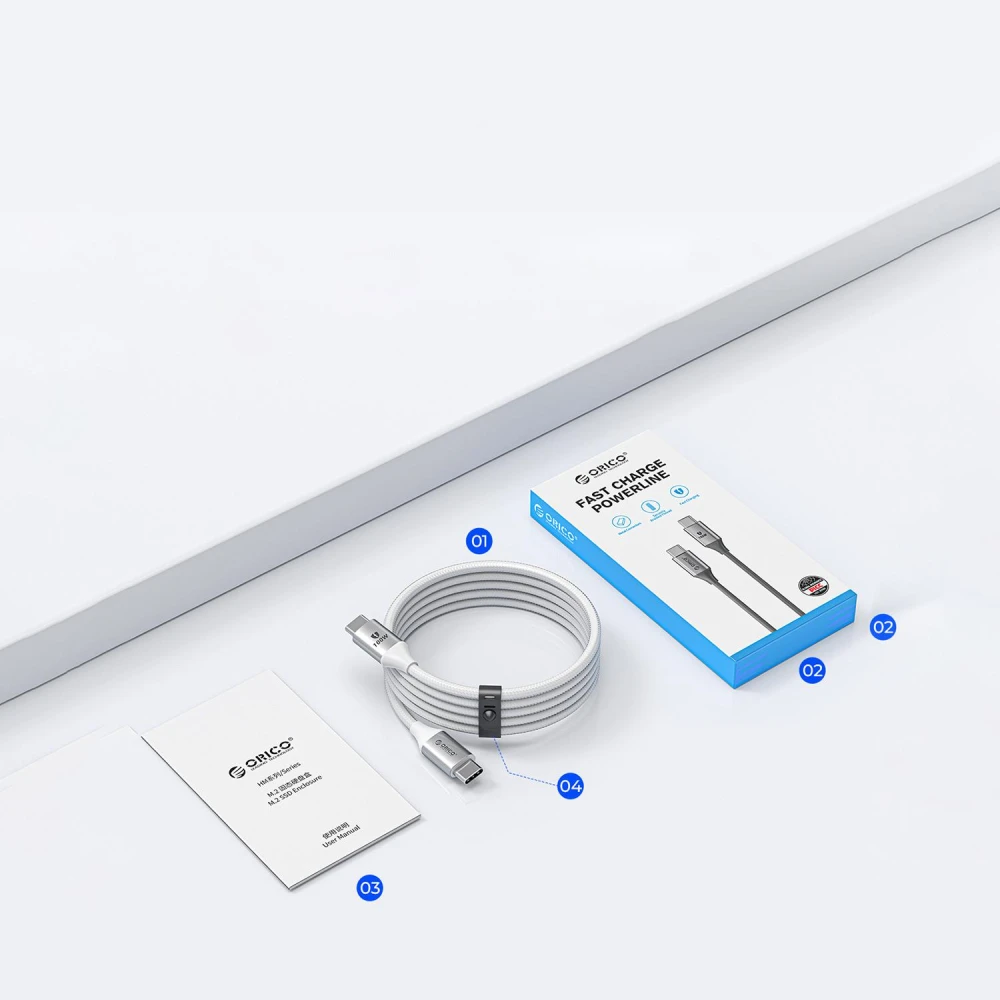 - 1x Orico 100W 5A PD USB-C to USB-C Hızlı Şarj ve Data Kablosu Beyaz