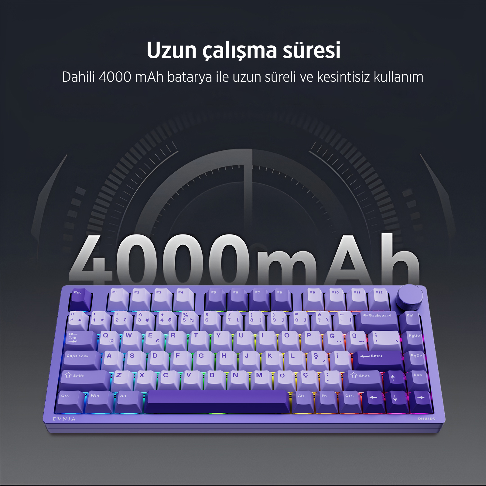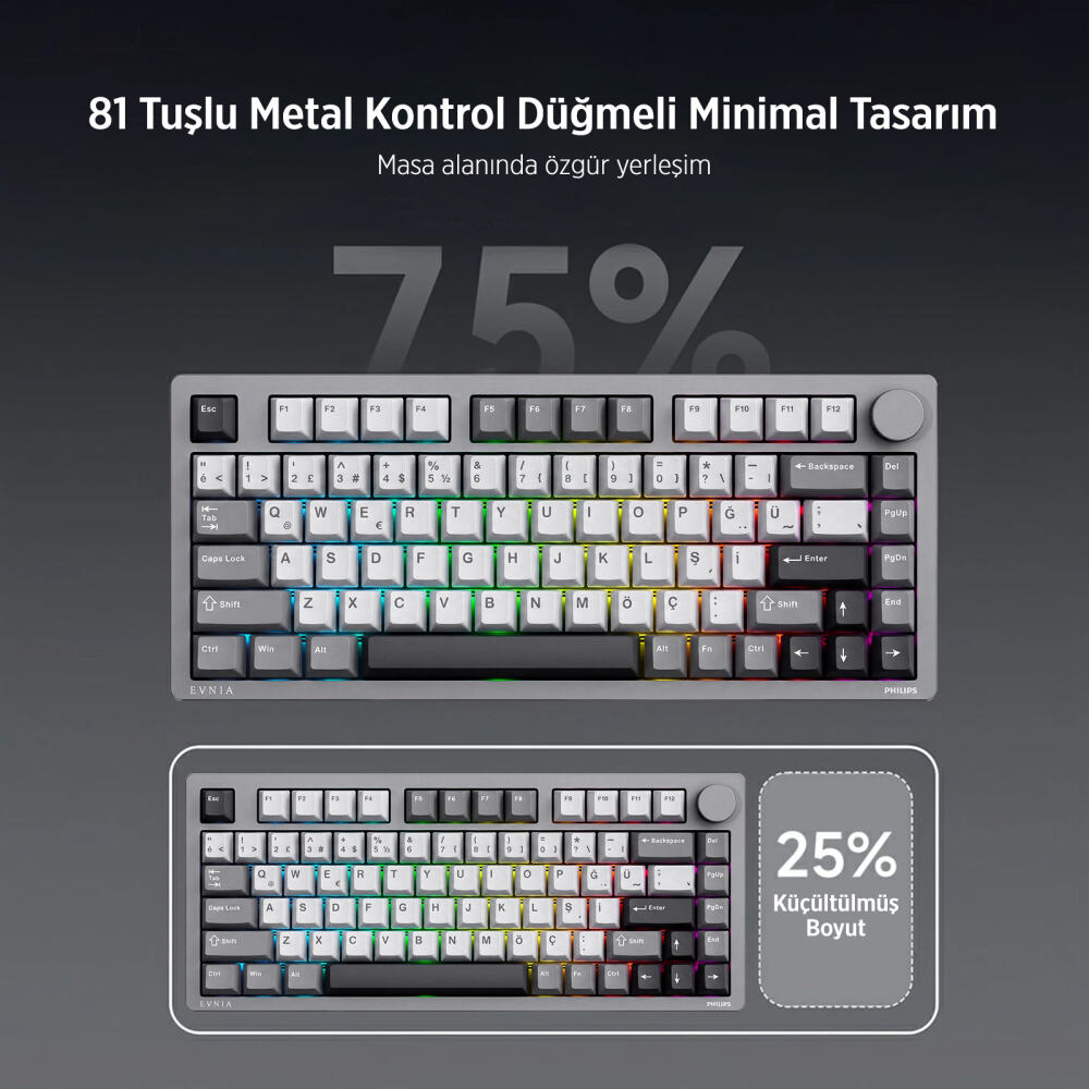 Philips EVNIA SPK8618 Mekanik RGB 81 Tuş USB/Bluetooth/2.4G Kablosuz Oyuncu Klavyesi Gri