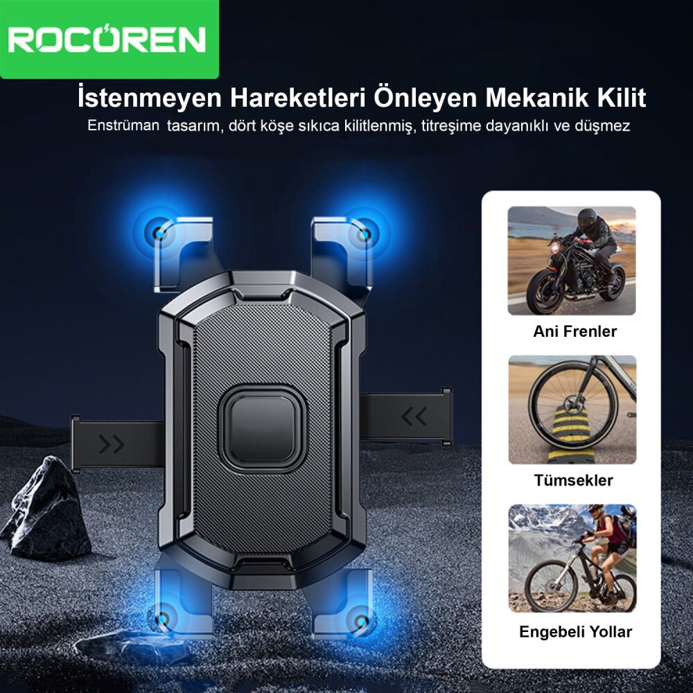 Rocoren Letu Bisiklet Telefon Tutucu, bisiklet ve motosiklet sürerken telefonunuzu güvenli ve pratik bir şekilde kullanmanız için özel olarak tasarlanmıştır. Sağlam yapısı ile her türlü yol koşulunda maksimum stabilite sağlar. Mekanik kilitleme özelliği, telefonunuzu tek dokunuşla güvenli şekilde sabitlerken, tek elle yerleştirme ve çıkarma özelliği kullanım kolaylığı sunar.