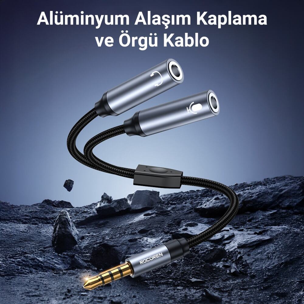Rocoren Hi-Fi TRRS Mikrofon ve Kulaklık Birleştirici 3.5mm Y Jack Kablo, tek bir 3.5mm TRRS çıkışına sahip cihazlar için mikrofon ve kulaklık bağlantısını ayırarak daha iyi bir ses deneyimi sunmanın yanında kulaklık ve mikrofon girişi ayrı olan cihazları sorunsuz şekilde kullanmanızı sağlar. Hi-Fi ses kalitesi, dayanıklı örgü kablo tasarımı ve alüminyum alaşım gövdesi ile uzun ömürlü kullanım sağlar.
