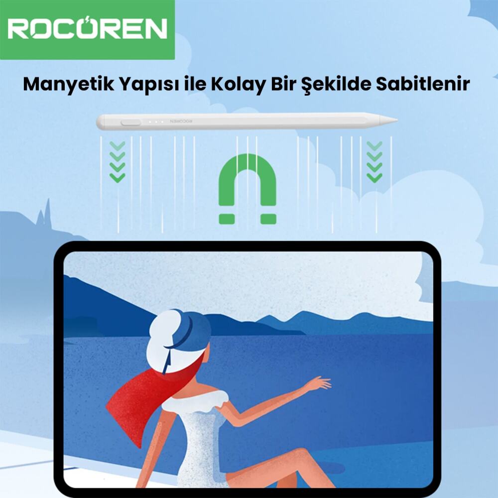 Rocoren Creator Serisi Stylus Kalem ile yaratıcılığınızı serbest bırakın ve ilham anlarınızı kolayca yakalayın. Gerçek bir kalem gibi çalışan 5D eğim algılama teknolojisi sayesinde çizimlerinizde ve yazılarınızda mükemmel kalınlık kontrolü sağlarken, avuç içi reddetme (Palm Rejection) özelliği ile elinizi ekran üzerinde rahatça gezdirerek kesintisiz bir deneyim yaşayın. iPad'inizin yanına manyetik olarak yapışarak her an elinizin altında olur ve Type-C ile süper hızlı şarj özelliği sayesinde sadece 5 dakikalık şarjla %80 doluluğa ulaşır. iPad widget'ı üzerinden anlık pil durumunu takip ederek işlerinizi asla yarıda bırakmayın.