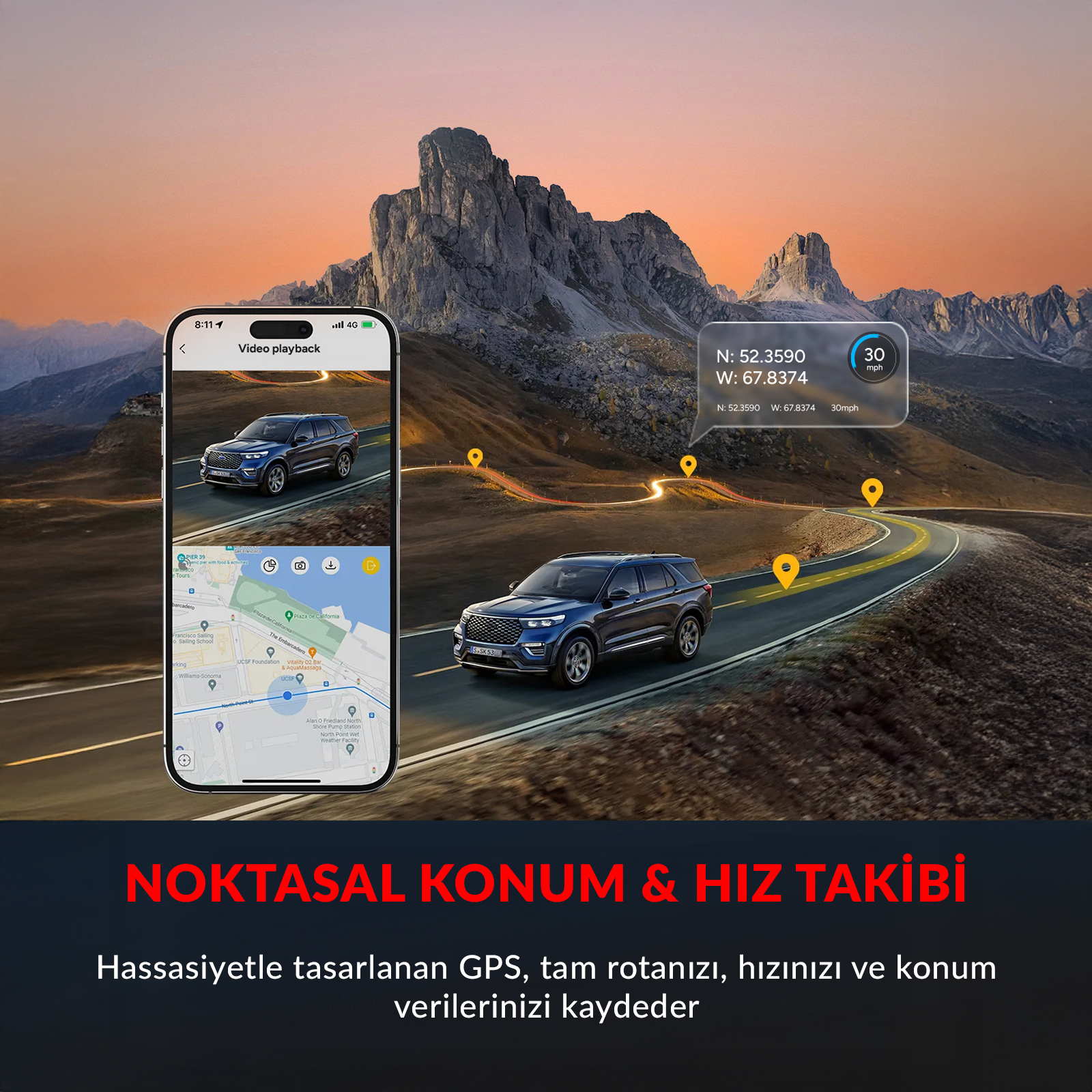 Entegre GPS ve BEIDOU konumlandırma sistemi ile M60 araç kamerası, seyahat rotanızı, hızınızı ve konumunuzu metre hassasiyetinde kaydeder. Her sürüşünüzün detaylı güzergah bilgilerini saklar ve gerektiğinde kullanmanızı sağlar. 2 kameralı araç kamerası teknolojisi ile birleşen GPS özelliği, kapsamlı sürüş verileri sunar.