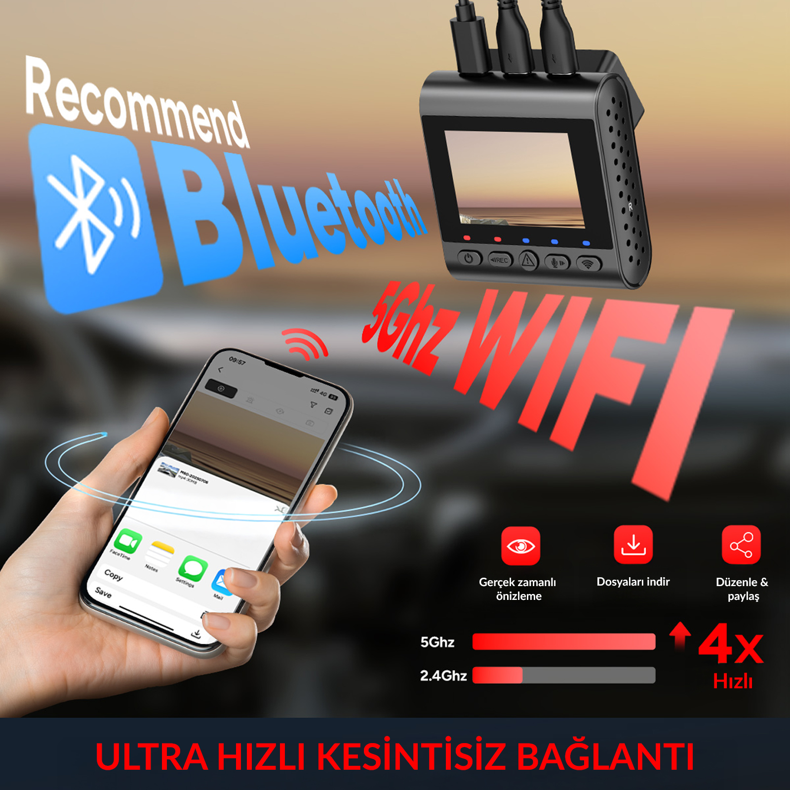 Döngüsel kayıt, zaman atlamalı video, acil durum kaydı ve hareket algılama gibi çok yönlü fonksiyonlar sunan bu dashcam, her sürüş senaryosuna uyum sağlar. HDR teknolojisi hem ön hem de arka kamerada bulunur, düşük ışık koşullarında ve yüksek kontrastlı ortamlarda bile net görüntü elde edilmesini sağlar. WiFi bağlantısı ile kayıtlarınızı anında akıllı telefonunuza aktarabilirsiniz.