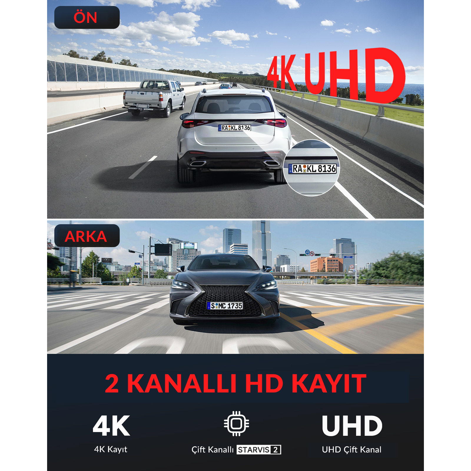 - Kanal: 2 kanal ön arka araç kamerası sistemi