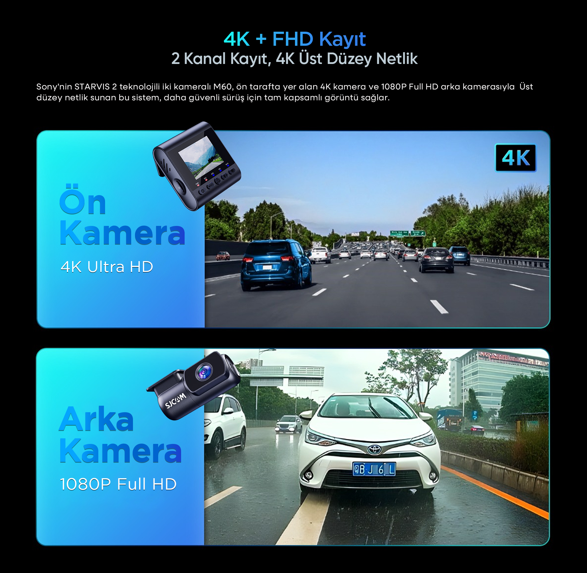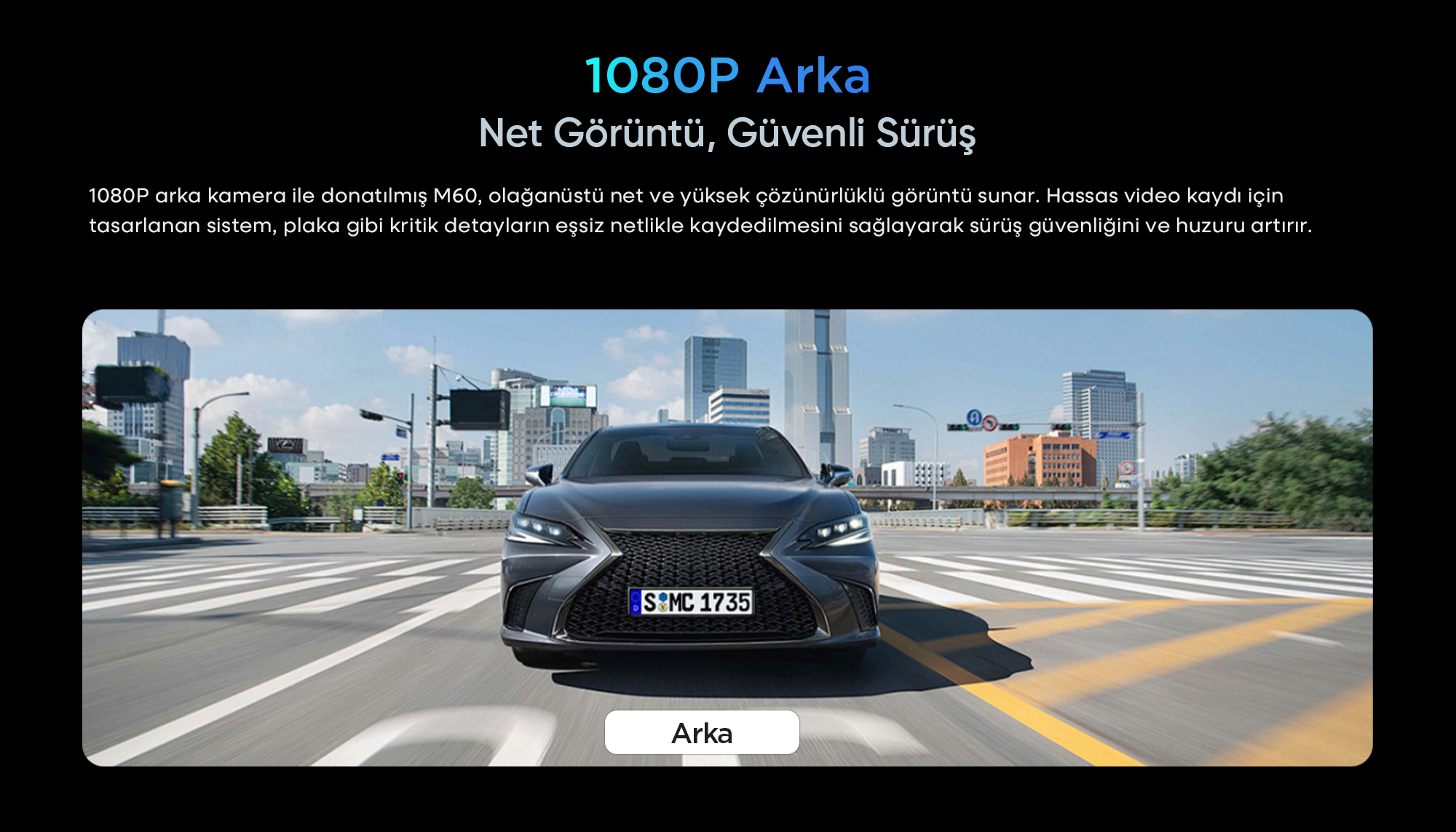 1080P arka kamera ile donatılmış M60, olağanüstü net ve yüksek çözünürlüklü görüntü sunar. Hassas video kaydı için tasarlanan sistem, plaka gibi kritik detayların eşsiz netlikle kaydedilmesini sağlayarak sürüş güvenliğini ve huzuru artırır.