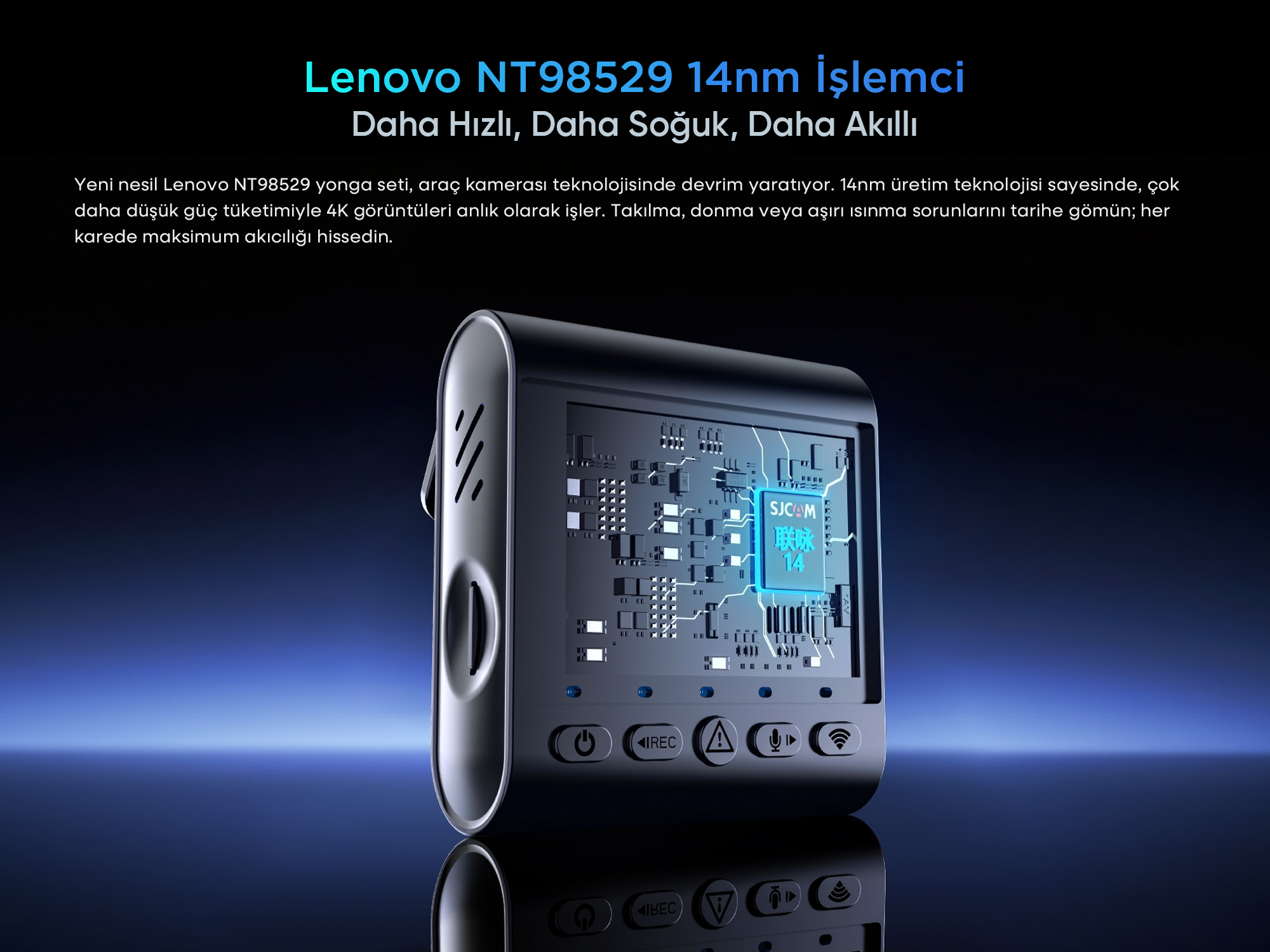 Yeni nesil Lenovo NT98529 yonga seti, araç kamerası teknolojisinde devrim yaratıyor. 14nm üretim teknolojisi sayesinde, çok daha düşük güç tüketimiyle 4K görüntüleri anlık olarak işler. Takılma, donma veya aşırı ısınma sorunlarını tarihe gömün; her karede maksimum akıcılığı hissedin.