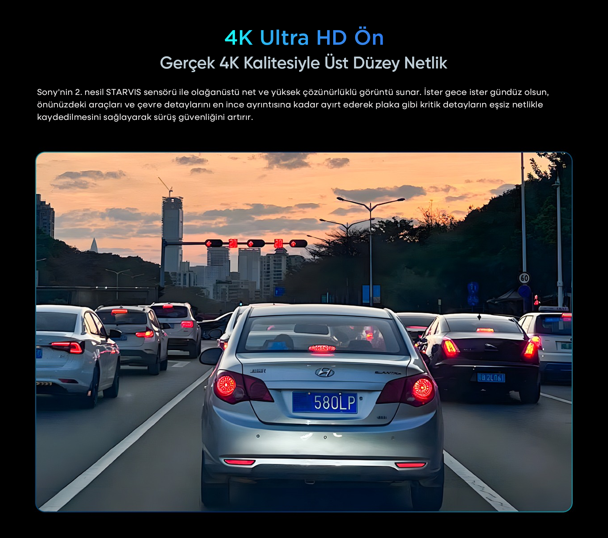 Sony'nin 2. nesil STARVIS sensörü ile olağanüstü net ve yüksek çözünürlüklü görüntü sunar. İster gece ister gündüz olsun, önünüzdeki araçları ve çevre detaylarını en ince ayrıntısına kadar ayırt ederek plaka gibi kritik detayların eşsiz netlikle kaydedilmesini sağlayarak sürüş güvenliğini artırır.