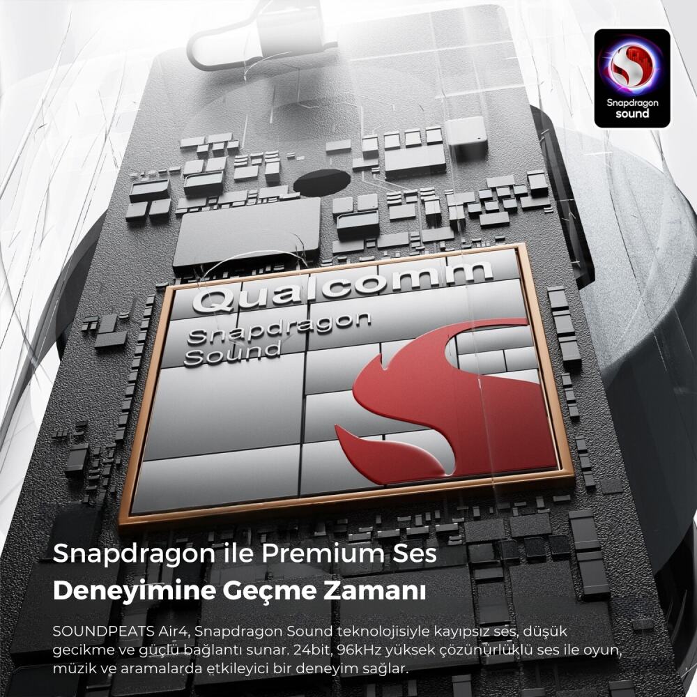 SoundPEATS Air4, şık tasarımı ve yüksek ses kalitesiyle günlük kullanıma uygun bir TWS kulaklıktır. Bluetooth 5.3 ve Qualcomm QCC3071 chipset sayesinde stabil ve hızlı bağlantı sağlarken, aptX Lossless, AAC ve SBC codec desteği ile üstün ses deneyimi sunar. Her biri 35 mAh bataryaya sahip kulaklıklar ve 330 mAh kapasiteli şarj kutusuyla toplamda 26 saate kadar kullanım süresi sağlar. IPX4 sertifikası sayesinde su sıçramalarına karşı dayanıklı olan Air4, sadece 4 gram ağırlığı ve dokunmatik kontrol özelliğiyle konforlu ve pratik bir kullanım sunar.