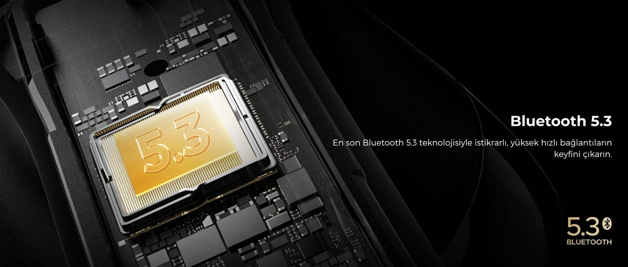 Bluetooth 5.3 teknolojisi sayesinde hızlı ve kararlı bağlantı sağlar.