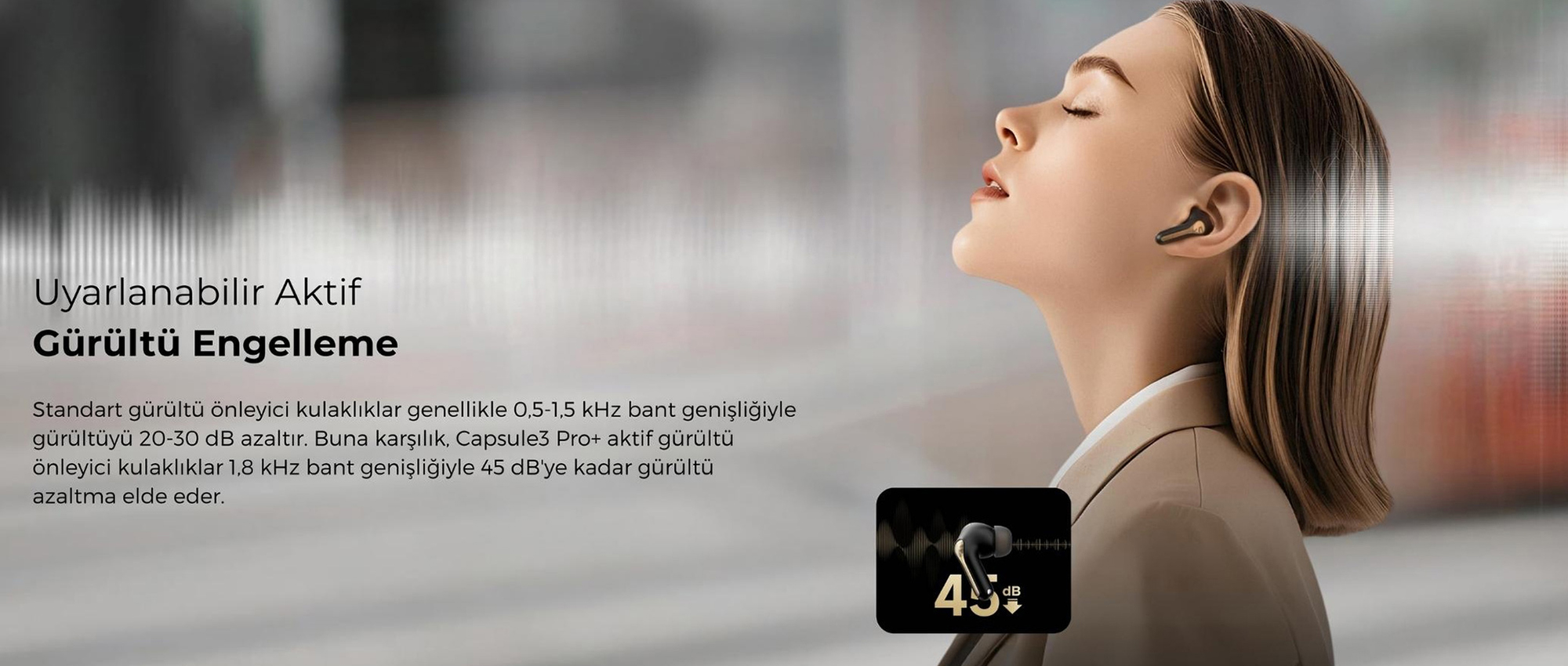 ANC teknolojisi sayesinde çevresel gürültüyü etkili şekilde azaltır, böylece daha net ve kesintisiz müzik dinleme ve görüşme imkanı sağlar.