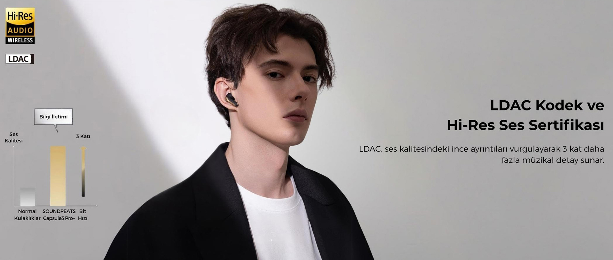 LDAC, SBC ve AAC codec’leri ile yüksek çözünürlüklü, kaliteli ses deneyimi sunar.