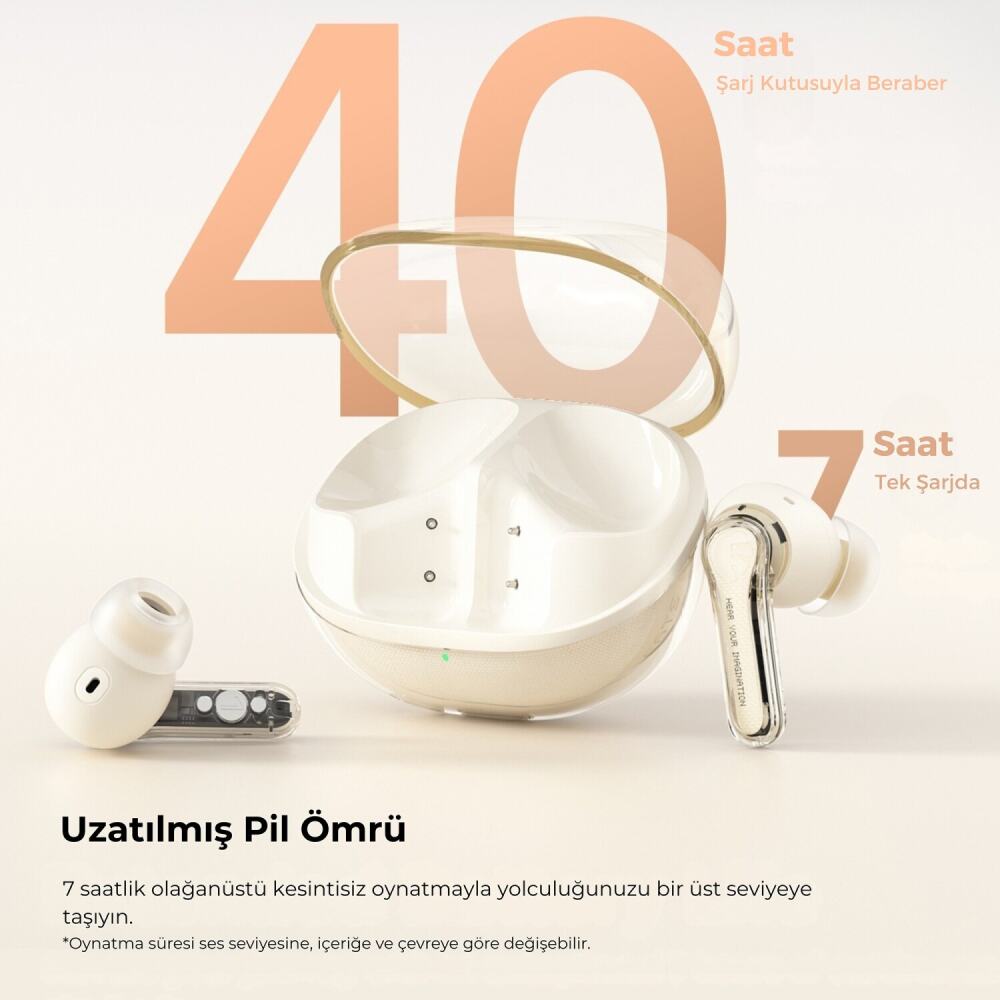 ANC teknolojisi sayesinde çevresel gürültüyü etkili şekilde azaltır, böylece daha net ve kesintisiz müzik dinleme ve görüşme imkanı sağlar.