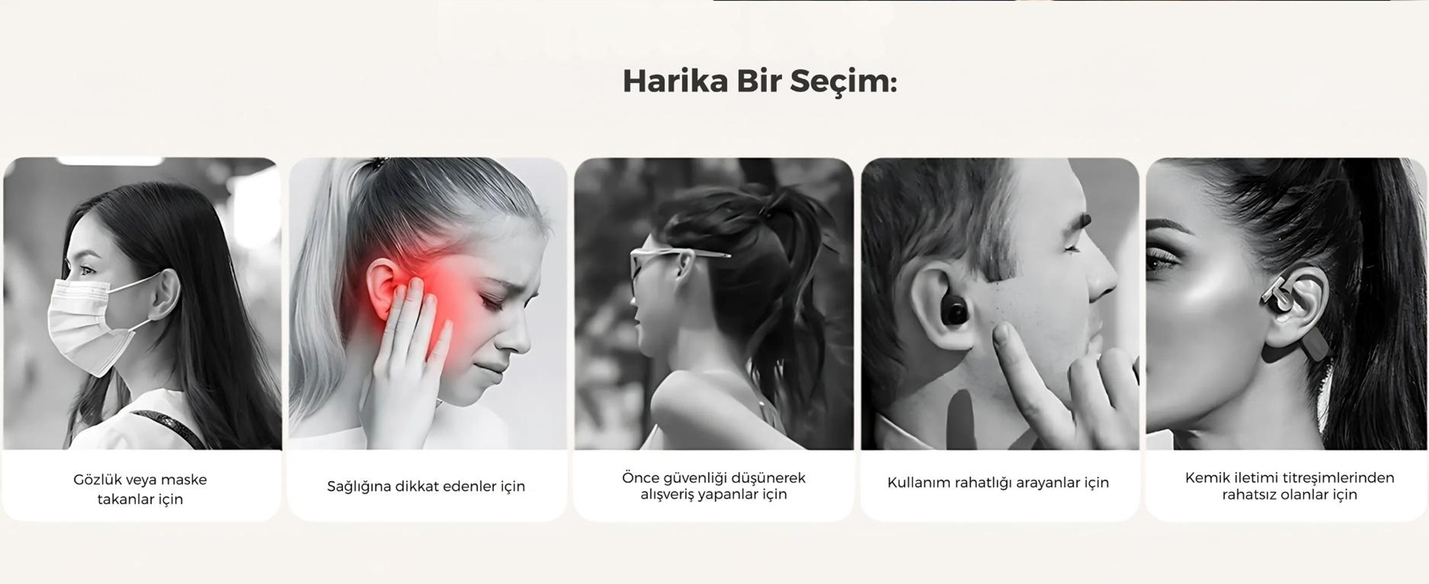 Her bir kulaklık yalnızca 4.73g ağırlığındadır. Yüksek kaliteli TPU malzeme ve nikel-titanyum hafızalı tel ile üretilen clip-on yapı, farklı kulak şekillerine güvenli şekilde uyum sağlar. Açık kulak tasarımı sayesinde kulak kanalına baskı uygulamaz, uzun süreli kullanımlarda yorgunluk hissi oluşturmaz. Terlemeye dayanıklı ve sabit duruşu sayesinde spor ve hareketli aktiviteler için uygundur.