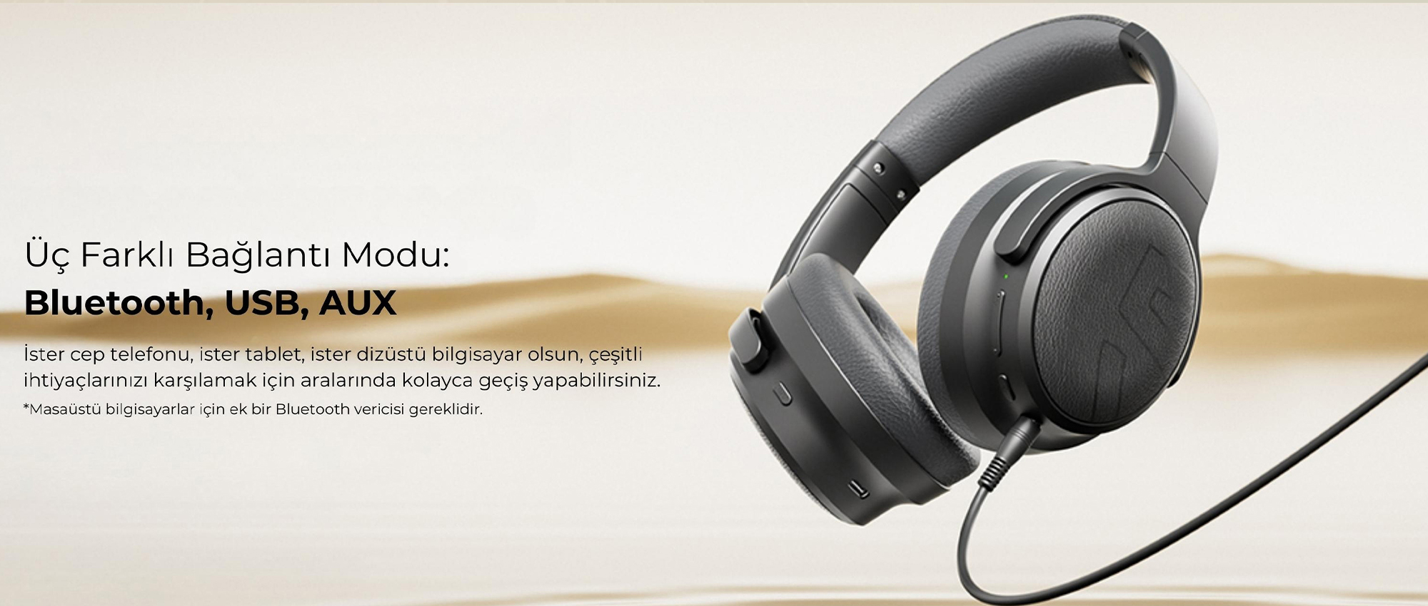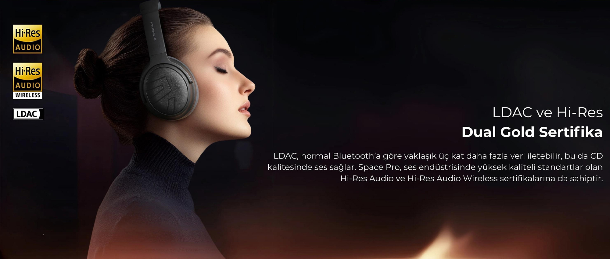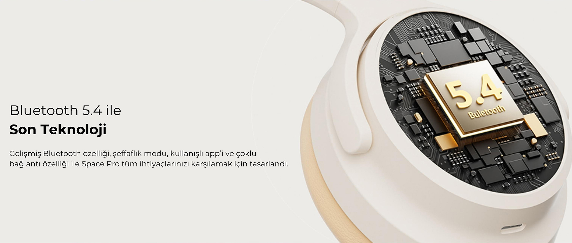SoundPEATS Space Pro, etkileyici 151 saate kadar çalma süresiyle uzun kullanım sunan, yüksek kapasiteli 1100 mAh bataryaya sahip kulak üstü bir kulaklıktır. Bluetooth 5.4 teknolojisi ve BT8931H chipseti ile kararlı bağlantı sağlarken; AAC, SBC ve LDAC codec desteği ile güçlü ve net ses performansı sunar. Fiziksel buton kontrollü, sağlam yapısı ve 282 gramlık ağırlığı ile günlük kullanımda konfor ve dayanıklılığı bir araya getirir. USB-C şarj girişiyle modern ve pratik bir deneyim sunar.