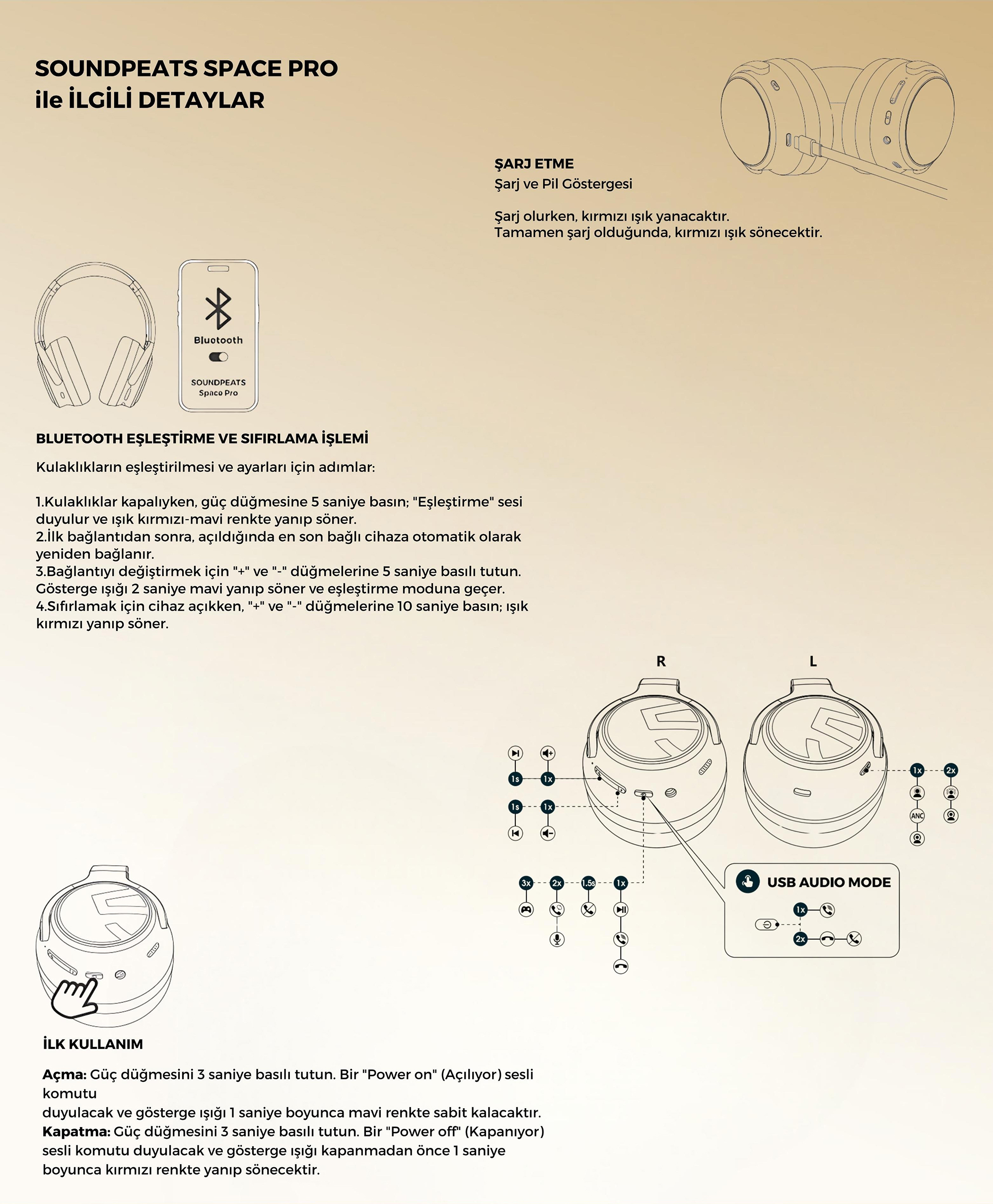 - 1 x SoundPEATS Space Pro Kulak Üstü Kablosuz Kulaklık