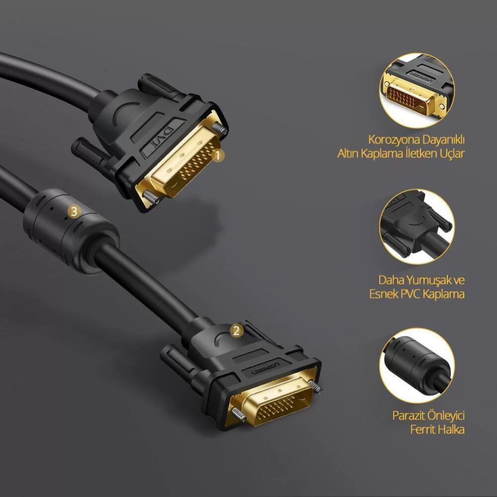 - 1 x Ugreen 24+1 DVI to DVI Görüntü Aktarma Kablosu 3 Metre