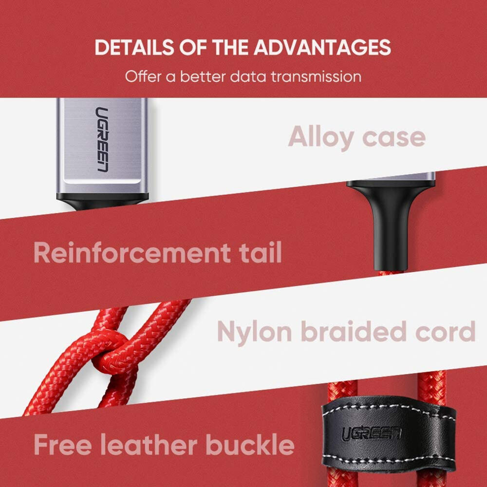 Ugreen USB to Lightning iPhone Örgülü Data ve Şarj Kablosu, standart iPhone şarj kablosuna göre örgülü dış zırhı ve Apple tarafından lisanslandırılmış MFI çipi, verimli bir şarj ile uzun ömürlü kullanım sunmaktadır. Naylon örgülü dış kılıf ve kılıfın altında bulunan TPE malzemeden üretilmiş ikinci kılıf sayesinde bükülmelere karşı dayanıklıdır. Ayrıca kablo üzerinde bulunan kablo toplayıcısı ile kabloyu kolayca yanınızda taşıyabilirsiniz. Apple tarafından lisanslandırılmış MFI çipi, Ugreen iPhone data ve şarj kablosunun tüm iPhone akıllı telefonlarda tam uyumlu bir şekilde çalışmasını sağlamaktadır. Dosyalarınızı USB 2.0 üzerinde 480Mbps’e kadar hızlı bir şekilde aktarabilirsiniz. Bunun yanında altın kaplama pinleri verimli bir aktarımın yanında korozyona karşı da koruma sağlar. Ugreen USB to Lightning iPhone Örgülü Data ve Şarj Kablosunu lightning portu bulunan tüm akıllı telefonlarınızda rahatlıkla kullanabilirsiniz.