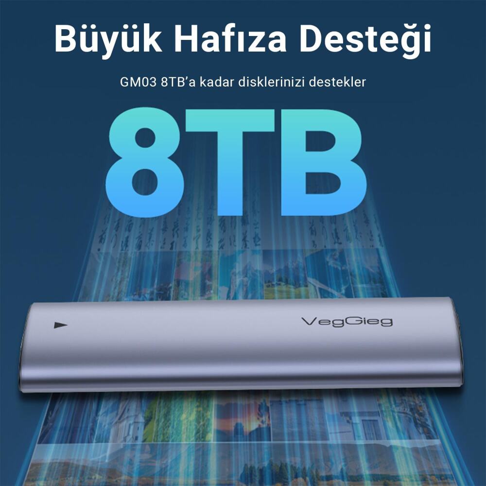 - 1 x Veggieg GM03 10Gbps USB 3.1 GeN2 Alüminyum M.2 SATA NGFF NVME SSD Disk Kutusu