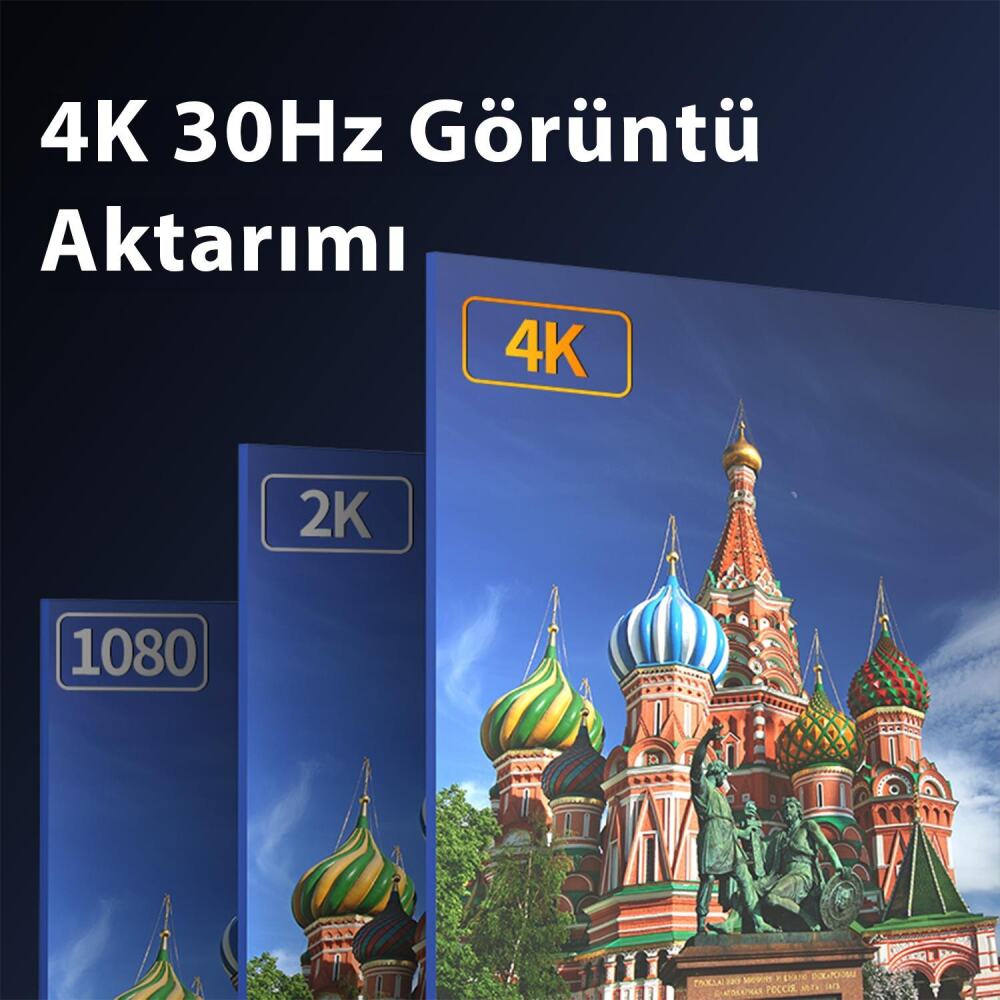 Veggieg Z605 4K 30Hz DisplayPort to HDMI Dönüştürücü Kablo 3 Metre, DisplayPort üzerinden görüntü kaynağına bağlanılarak HDMI üzerinden görüntüyü monitör, televizyon veya projektör gibi görüntüleyicilere aktarır. 4K çözünürlükte 30Hz tazeleme hızı 2K çözünürlükte 60Hz tazeleme hızı ile size yüksek çözünürlükte akıcı bir görüntü sunar. İçerisinde bulunan güçlü çipi gecikmeyi önlemenin yanında video ve ses senkronizasyonunu sağlar. Altın kaplama konnektörler ve PVC dış kaplaması ile dış koşullara karşı yüksek dayanıklılığa sahiptir.