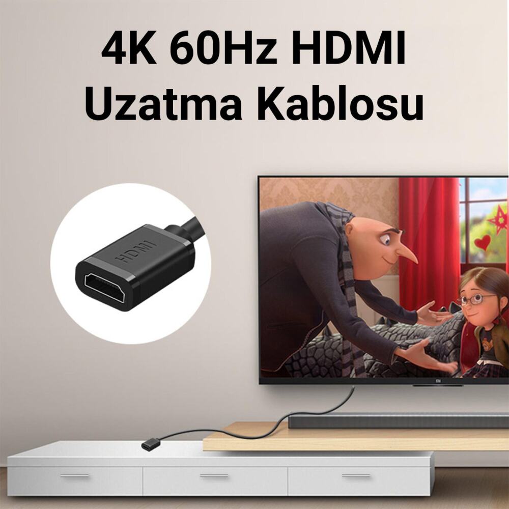 VegGieg 4K/60Hz HDMI 2.0 uzatma kablosu, bir ucunda dişi, diğer ucunda erkek konnektör bulunan bu kablo HDMI bağlantılarınızı kolayca uzatmanıza yardımcı olur. HDMI sinyalini etkili bir şekilde genişleterek TV Box, projektör, HDTV ve set-top box gibi cihazlarla sorunsuz bir bağlantı kurmanızı sağlar. HDMI uzatma kablosu, 4K çözünürlüğü ve 60Hz yenileme hızını destekleyerek, en yüksek görüntü kalitesini sunar. 10 Gbps veri iletim hızı sayesinde, video ve ses kalitesinde kayıplar olmadan yüksek çözünürlükte içerikleri aktarabilirsiniz. PVC malzemeden üretilmiş koruyucu kılıf, dış etkenlere karşı dayanıklıdır ve uzun ömürlü kullanım sağlar.