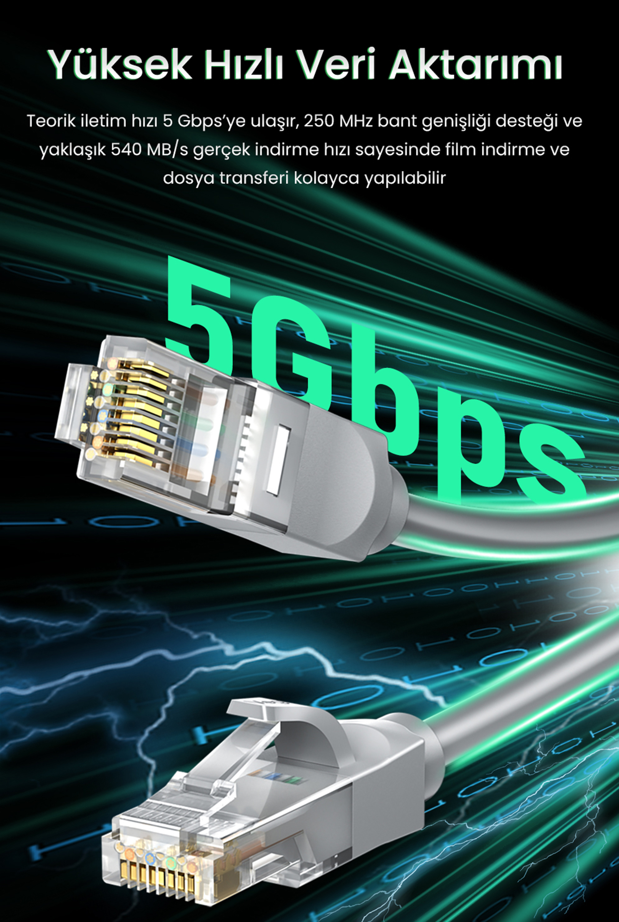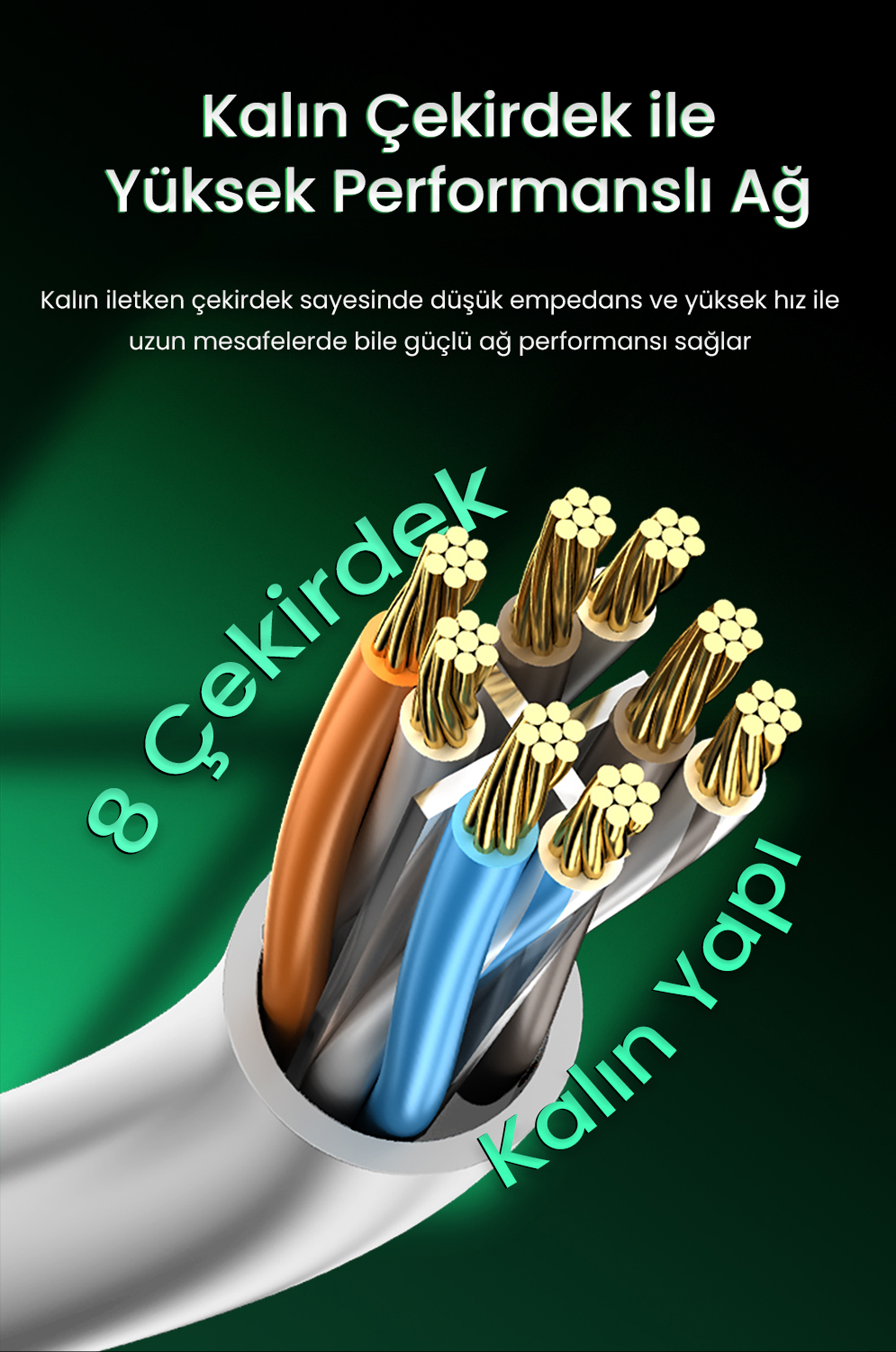 CAT6e kablo yapısı, modem, router, switch ve ağ cihazları arasında kararlı veri iletimi sağlar. Günlük internet kullanımı, dosya paylaşımı ve ağ bağlantıları için yeterli hız ve stabilite sunarak bağlantı kopmalarının önüne geçmeye yardımcı olur. Ev ve ofis ağ kurulumları için ideal bir çözüm oluşturur.