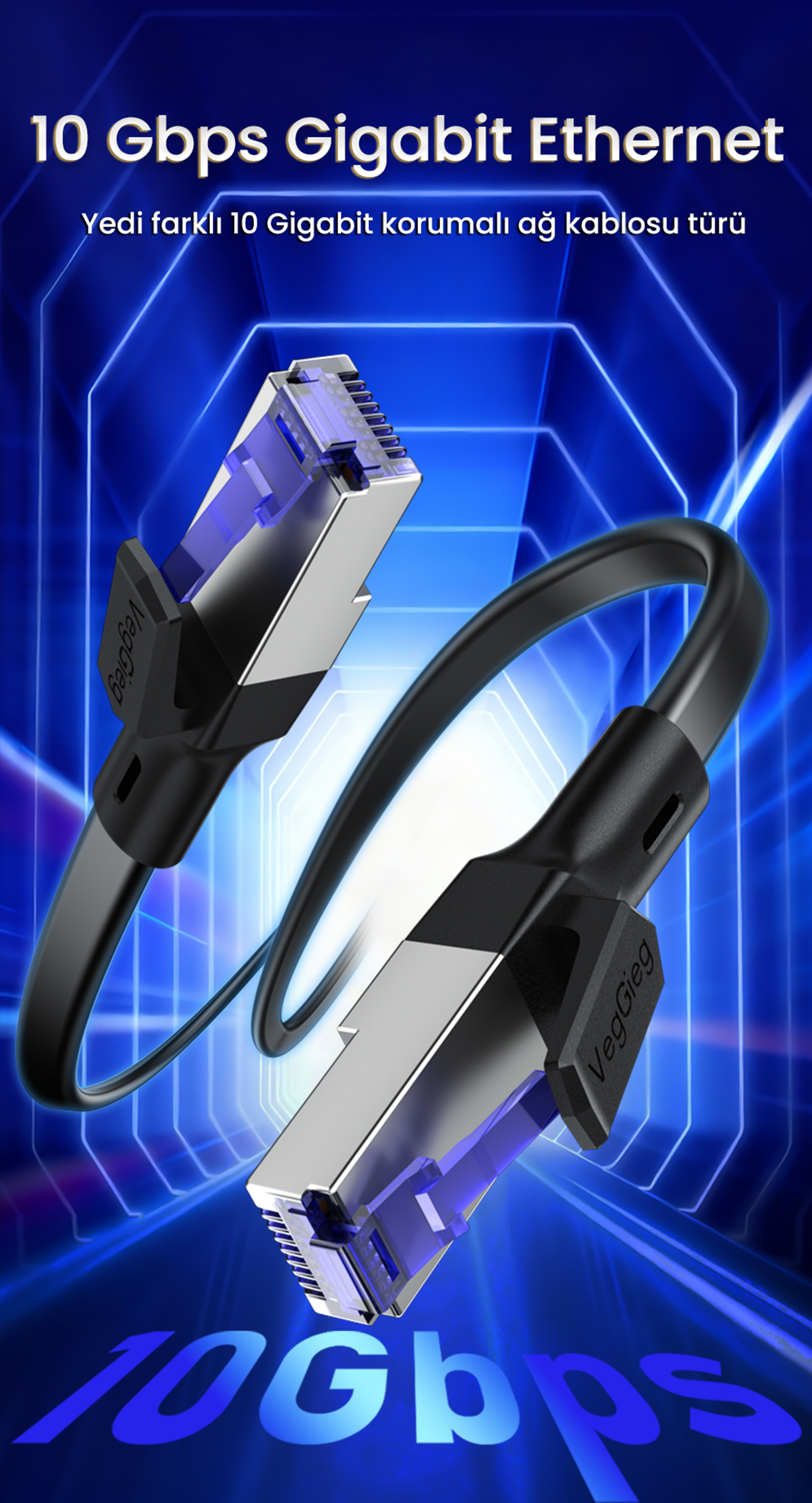 VegGieg RJ45 F/FTP CAT7 Ethernet Kablosu, hızlı veri akışına ihtiyaç duyan kullanıcılar için geliştirilmiştir. 10Gbps veri transfer hızı ve 600 MHz frekans desteği, büyük dosya aktarımları, çevrim içi oyunlar, yüksek çözünürlüklü medya akışı ve profesyonel ağ uygulamalarında akıcı bir deneyim sunar. CAT7 teknolojisi, daha düşük gecikme süreleriyle modern internet altyapılarına uyum sağlar.