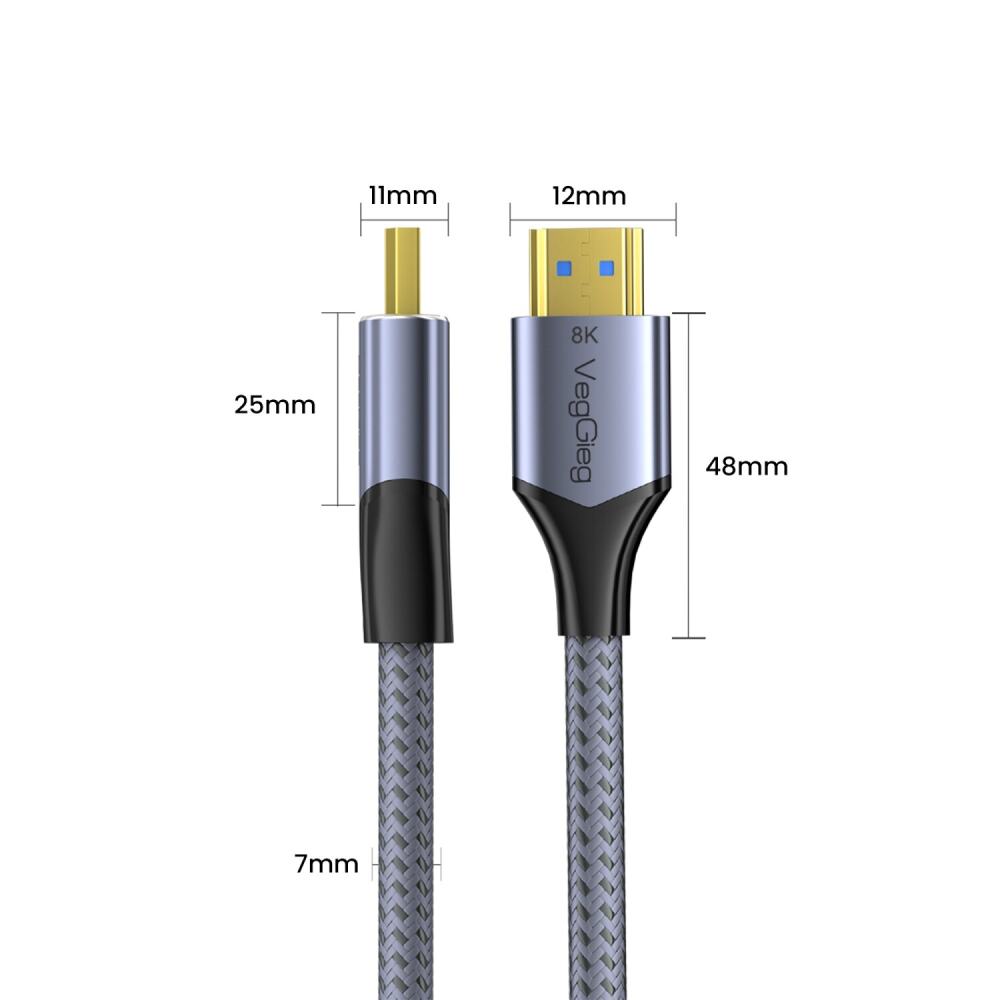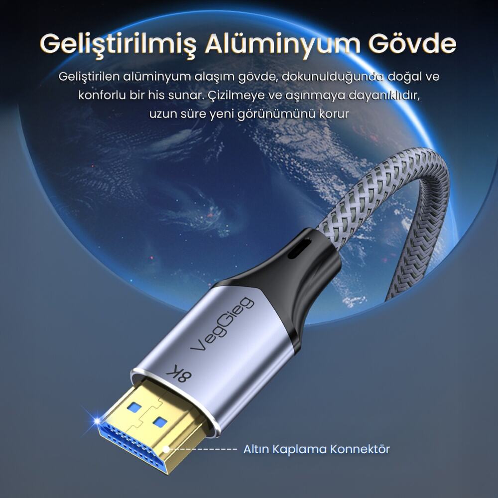 - 1 x VeGieg HDMI 2.1 8K 60Hz 4K 120Hz 48 Gbps HDR eARC HDCP 2.2 Örgülü Ses ve Görüntü Kablosu