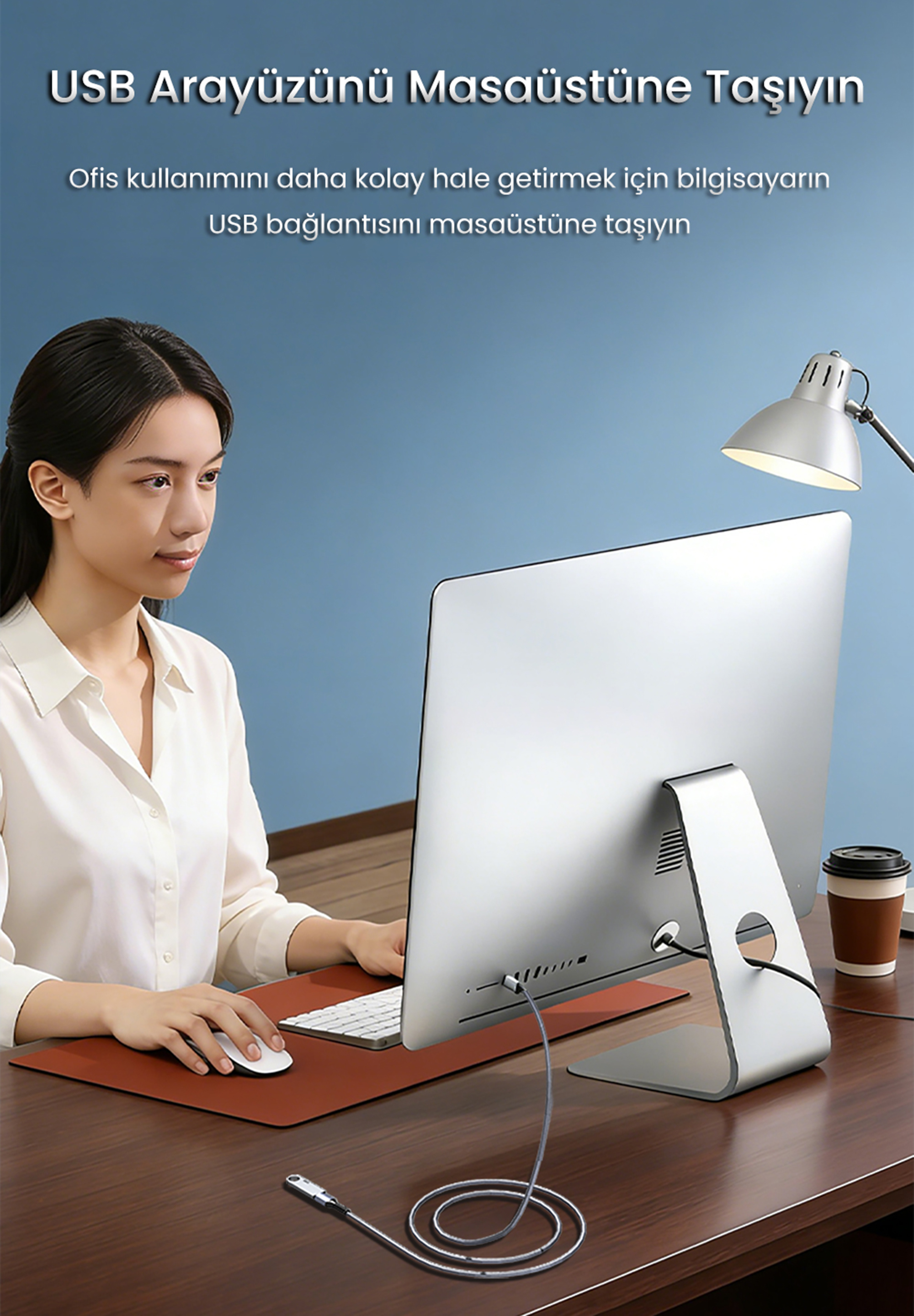 Bir ucu USB Type-A (male), diğer ucu USB Type-A (female) olan uzatma yapısı sayesinde mevcut USB kablolarının erişim mesafesini artırır. Flash bellek, klavye, mouse, yazıcı ve benzeri USB cihazlarının bağlantısını daha ergonomik hale getirir. Masaüstü ve dizüstü kullanımda pratik bir çözüm sunar.