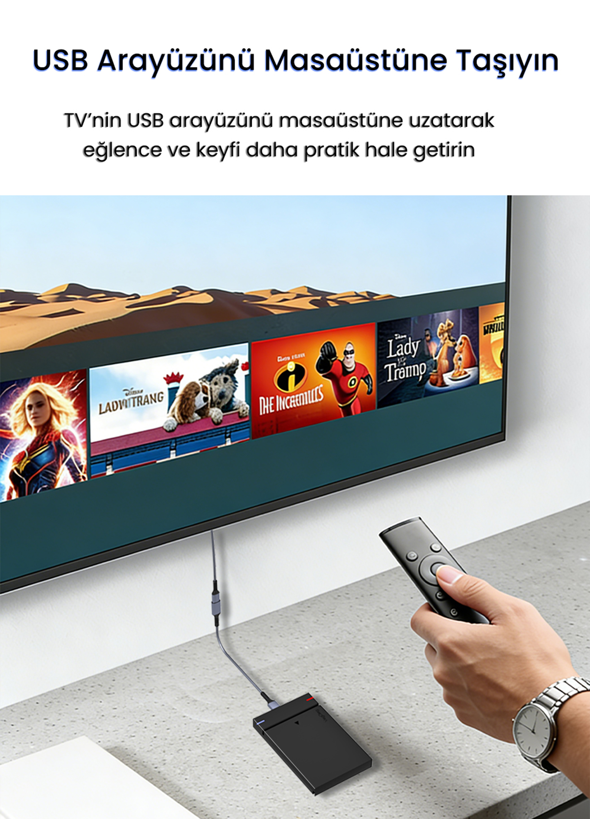 Bir ucu USB Type-A (male), diğer ucu USB Type-A (female) olan uzatma yapısı sayesinde mevcut USB kablolarının erişim mesafesini artırır. Flash bellek, klavye, mouse, yazıcı ve benzeri USB cihazlarının bağlantısını daha ergonomik hale getirir. Masaüstü ve dizüstü kullanımda pratik bir çözüm sunar.