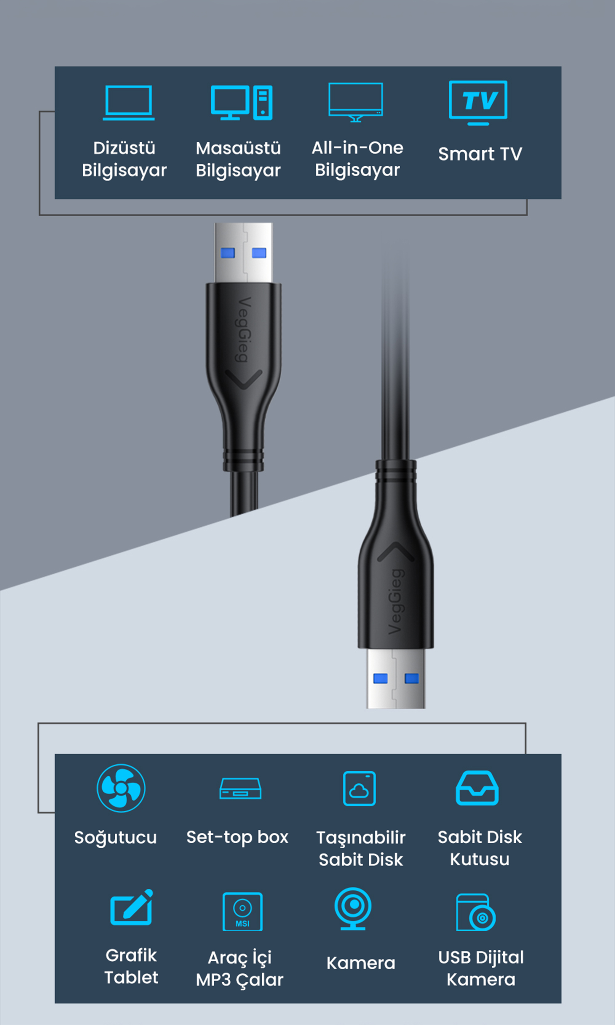 - Kablo Türü: USB 3.0 A-A (Erkek to Erkek)