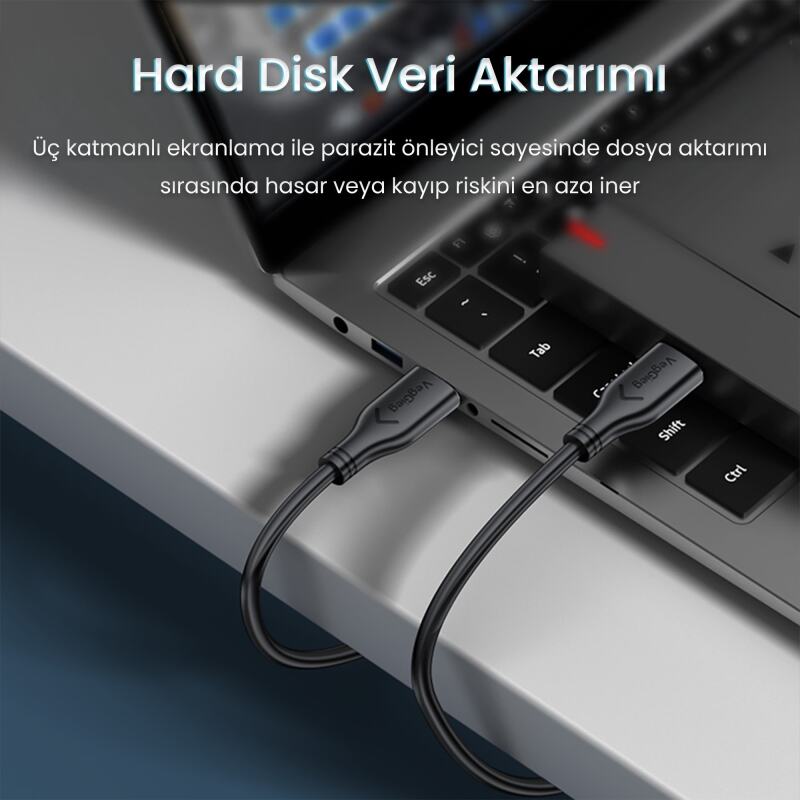 VegGieg USB 3.0 A-A (Erkek to Erkek) HDD Kablosu, harici depolama birimleri ve USB 3.0 destekli cihazlar arasında hızlı ve stabil veri aktarımı sağlamak üzere tasarlanmıştır. Yüksek kaliteli kablo yapısı ile güvenilir bağlantı deneyimi hedefler. USB 3.0 standardı ile uyumlu yapısı, günlük veri transfer ihtiyaçları için pratik ve kullanıcı dostu bir çözüm oluşturur.