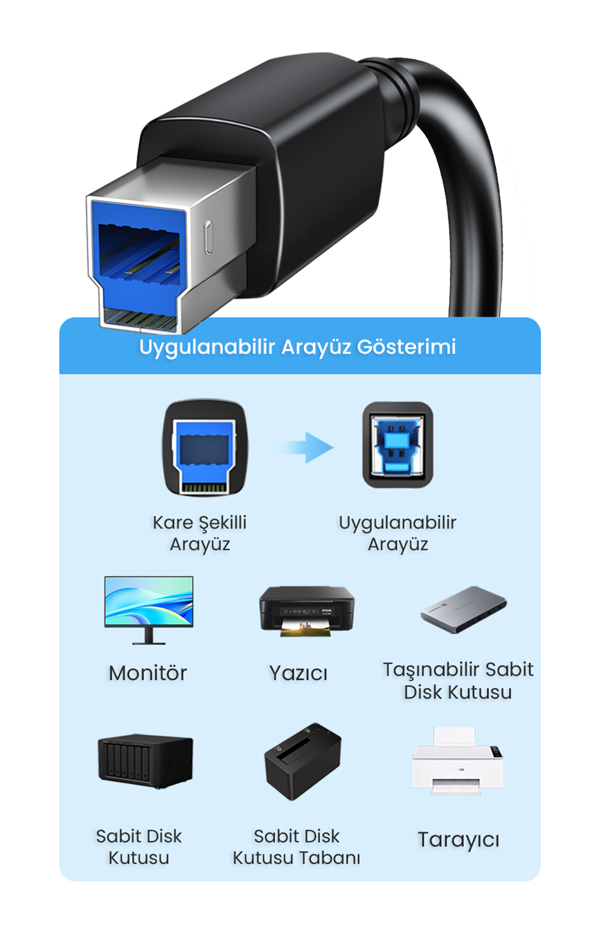 - Ürün Türü: USB 3.0 Yazıcı Kablosu
