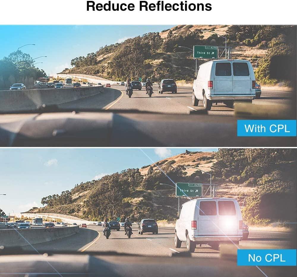 Viofo A129 A119 Pro A119S Araç Kameraları için CPL Filtre sayesinde sahip olduğunuz Viofo A129, 119 Pro, A119S, A118C2 gibi araç kameralarında seyir halindeyken güneş ışığı nedeniyle görüntüde oluşabilecek parlama, yansıma vb. durumların önüne geçerek daha net bir görüntü kayıt işlemi gerçekleştirebilmeniz mümkün hâle gelmektedir. Oldukça kolay biçimde araç kameranıza entegre ederek kullanabilirsiniz.