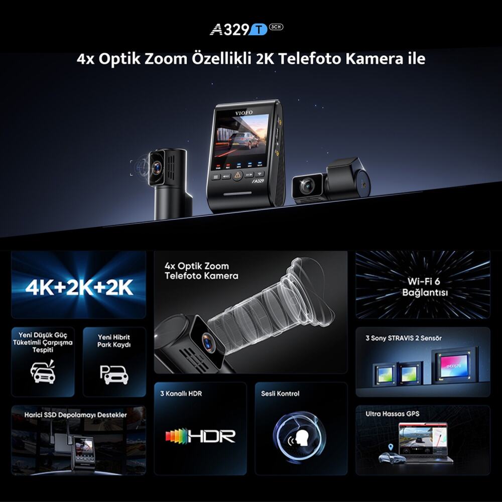 Evet, VIOFO A329T menü sistemi Türkçe dil desteğine sahiptir. Toplam 17 dil seçeneği arasında Türkçe de bulunmaktadır. Sesli komut özelliği şu anda sadece İngilizce desteklenmektedir. Kamera, 2.4 inç yüksek çözünürlüklü LCD ekran ile kolay kullanım sağlar ve tüm ayarları Türkçe menüden yapabilirsiniz.