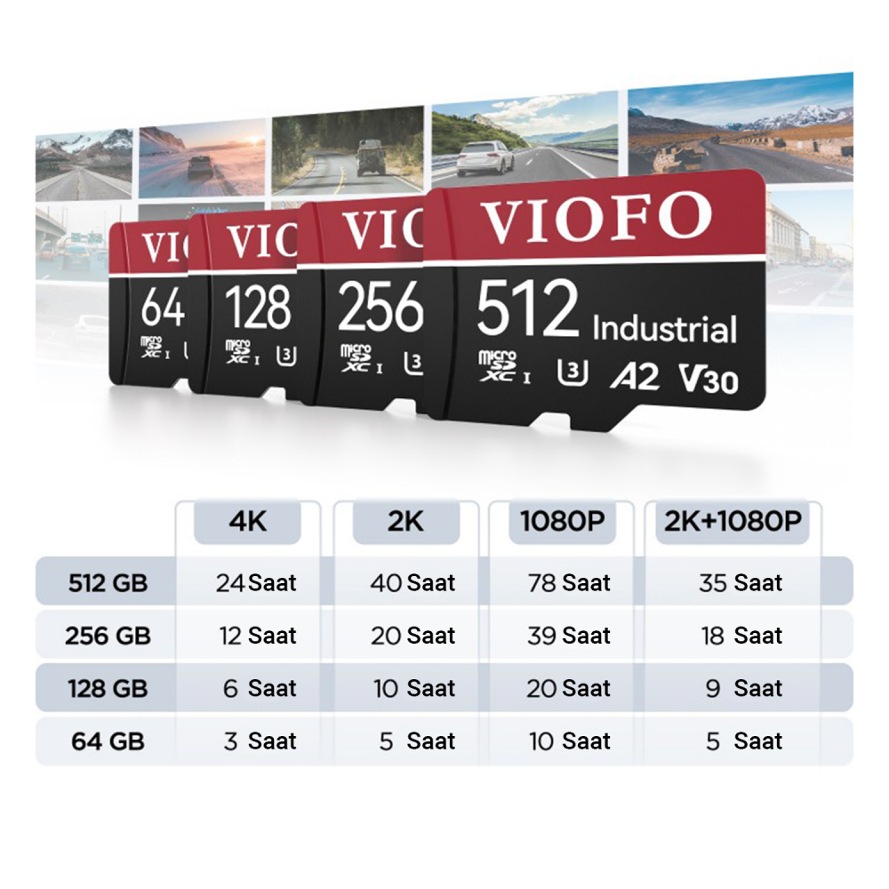 - 1 x Viofo High Endurance 128GB Class 10 A2 V30 100MB/s Okuma 80MB/s Yazma Micro SD Hafıza Kartı